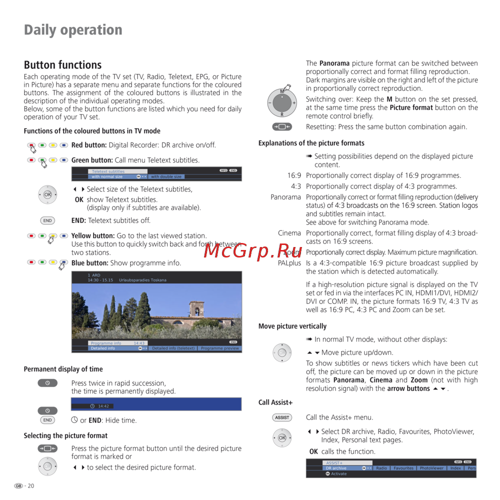 Loewe Individual 32 Selection HD+ — tägliche TV-Bedienungsanleitung: Funktionen der Farbbuttons [20/60]