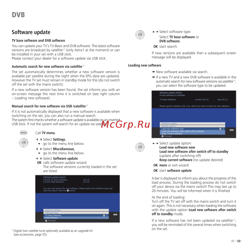 You can update your TV’s TV-Basic and DVB software. The latest software