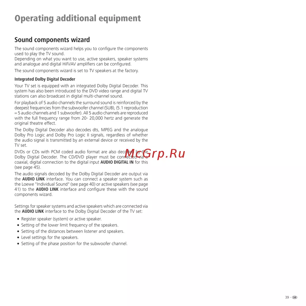 - Speaker system loewe individual sound on the dolby digital decoder of the tv set p.40