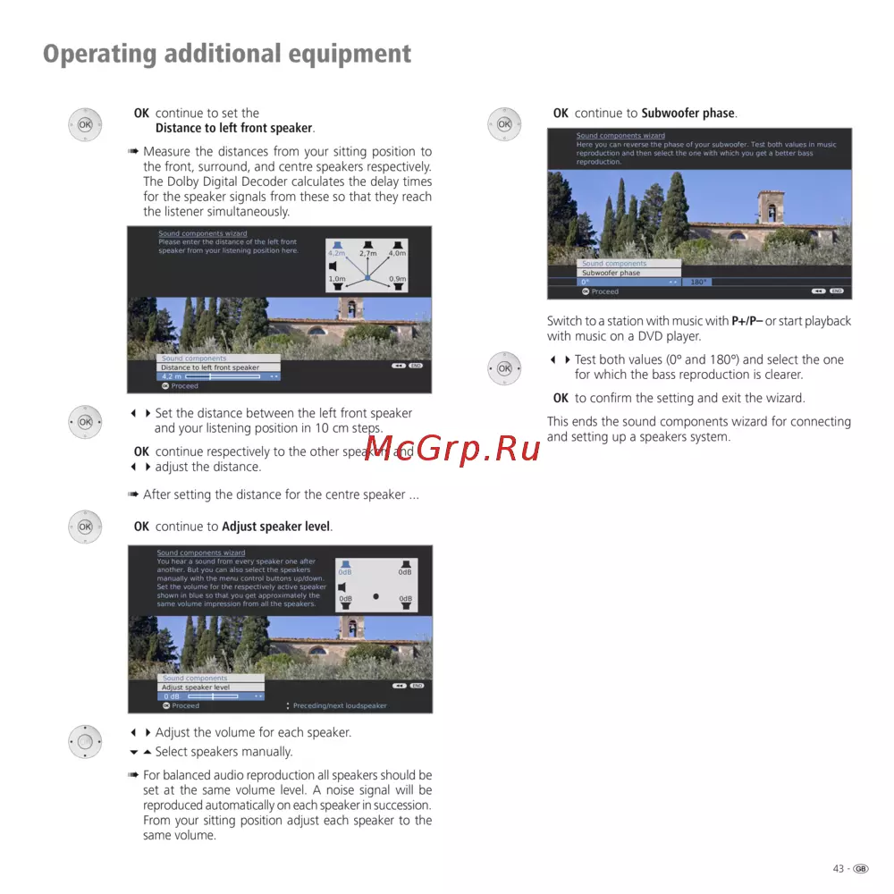 - You can change this during the initial installation page 11 or in the connection wizard page 35 before you connect other devices or make any changes please start the connection wizard page 35 and the sound components wizard page 39 and then follow the instructions that are displayed on the tv set p.5