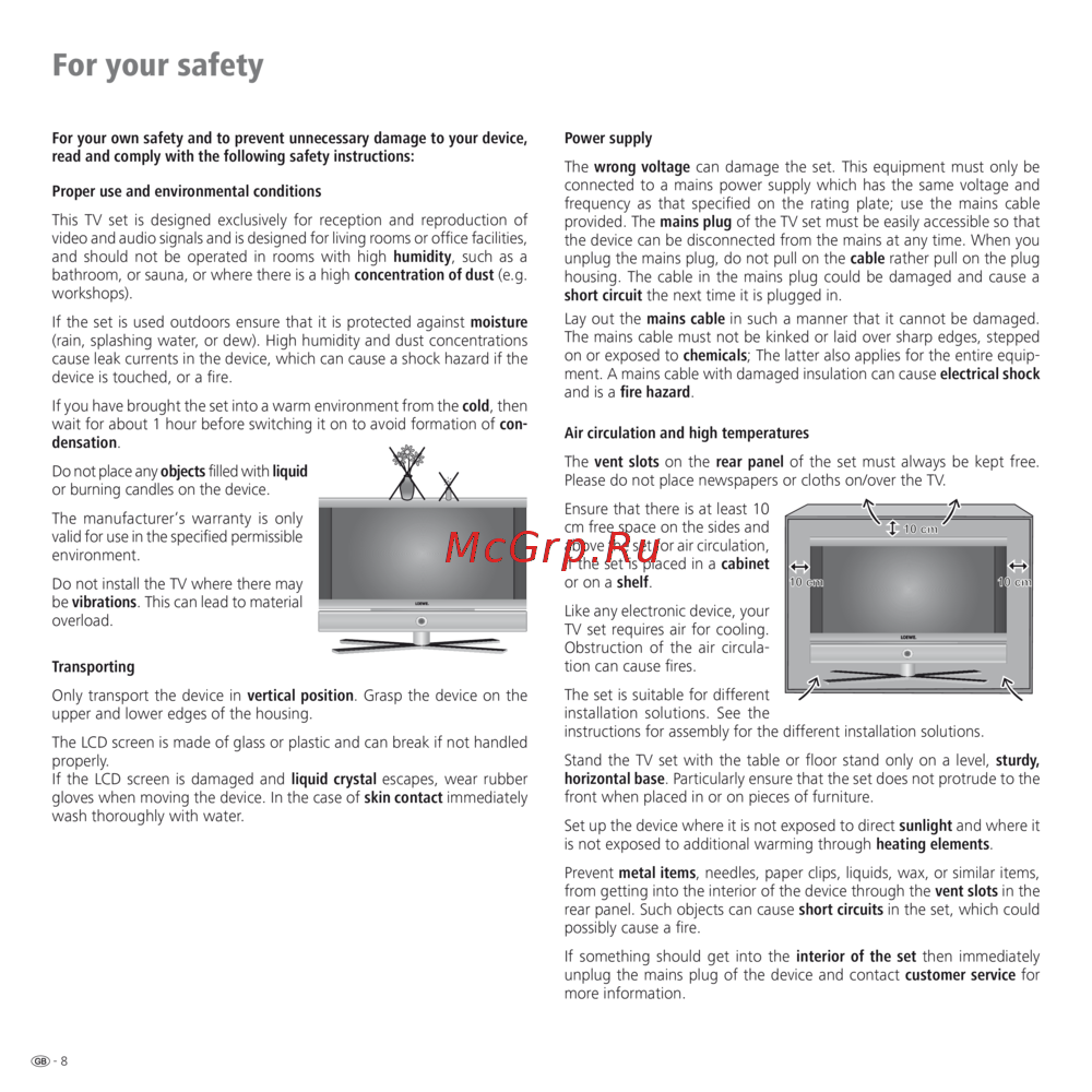 Loewe Individual 32 Selection HD+ — tV Safety Guide: Proper Use, Environment, Power & Setup Instructions [8/60]