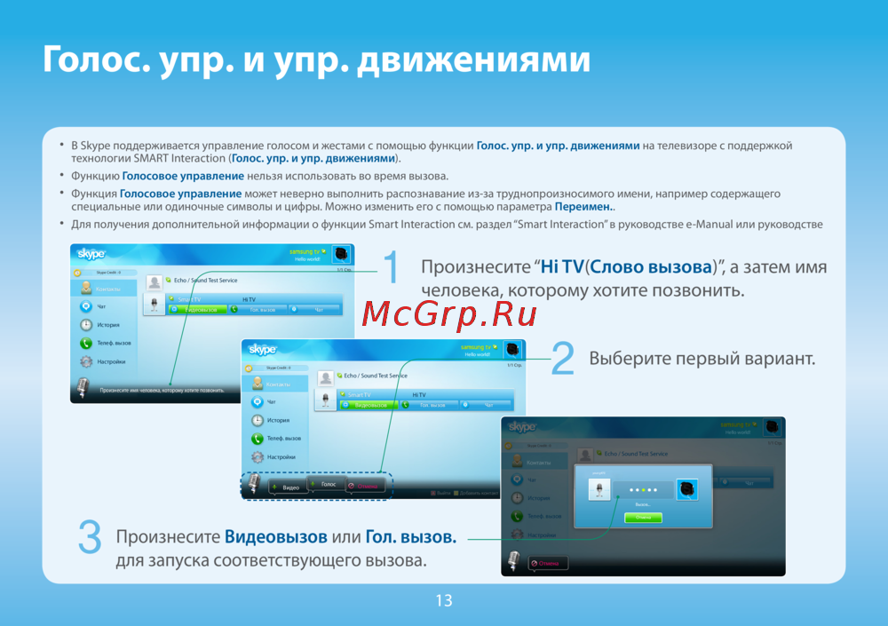 Samsung UE32 ES6100W [13/13] Произнесите hi tv слово вызова а затем имя человека которому хотите позвонить