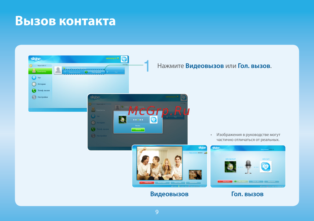 Samsung UE32 ES6100W [9/13] Видеовызов гол вызов