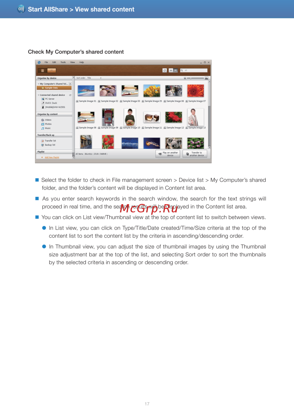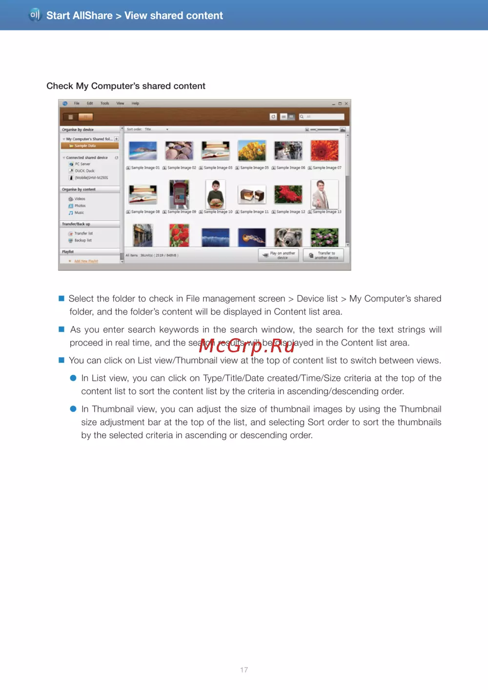 Samsung UE32 ES6100W — управление общим контентом на компьютере: пошаговое руководство [17/46]