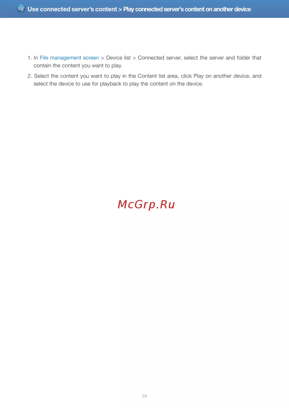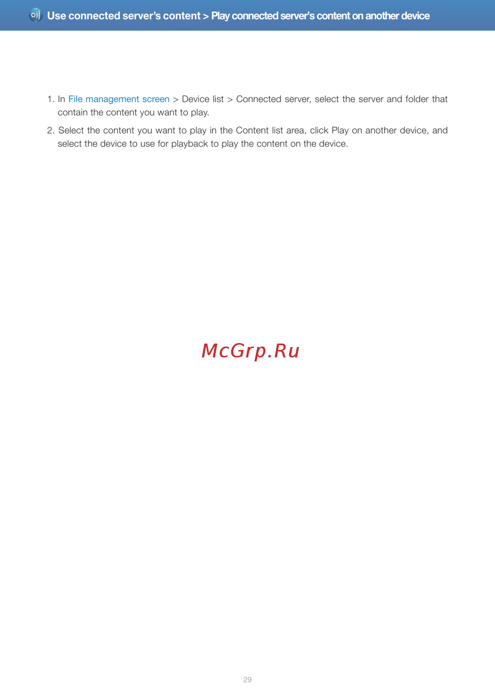 ![Samsung UE46ES7500S [29/46] Play connected server s content on another device](/views2/1126643/page29/bg1d.png)