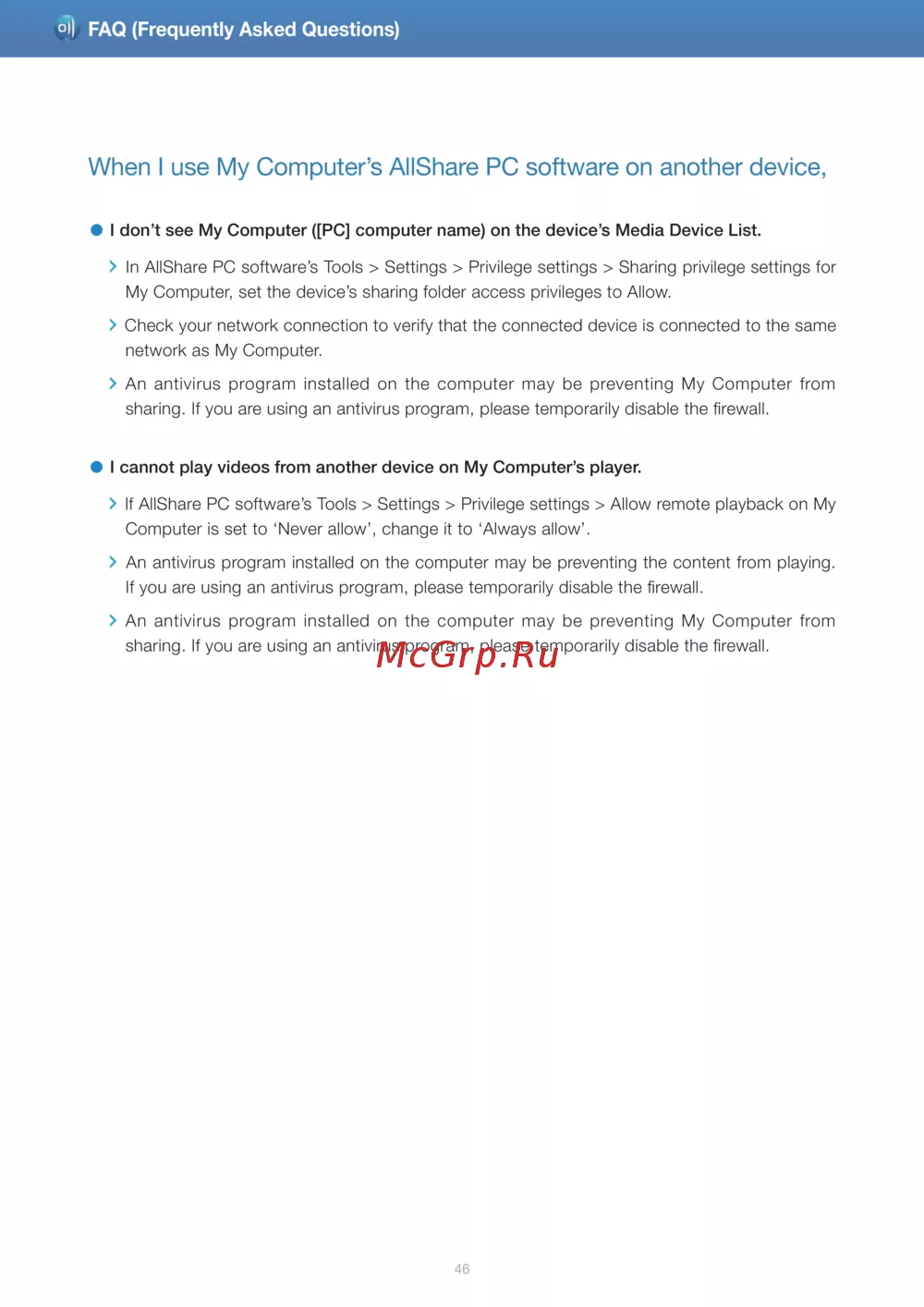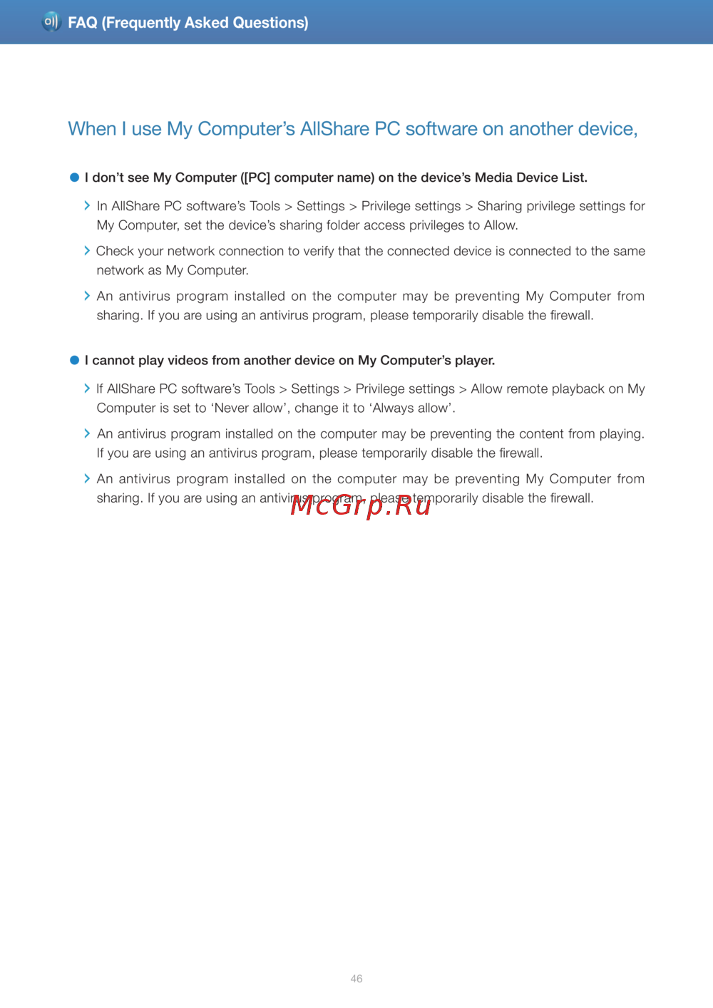 - When i use my computer s allshare pc software on another device p.46