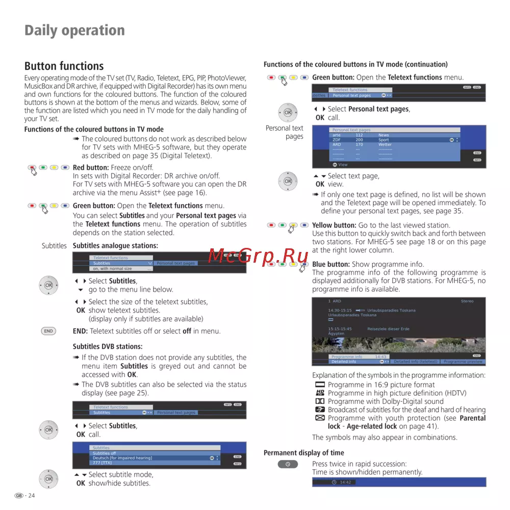 Узнайте о функциях цветных кнопок вашего телевизора в различных режимах. Легко управляйте телепередачами, субтитрами и телетекстом с помощью простых нажатий.