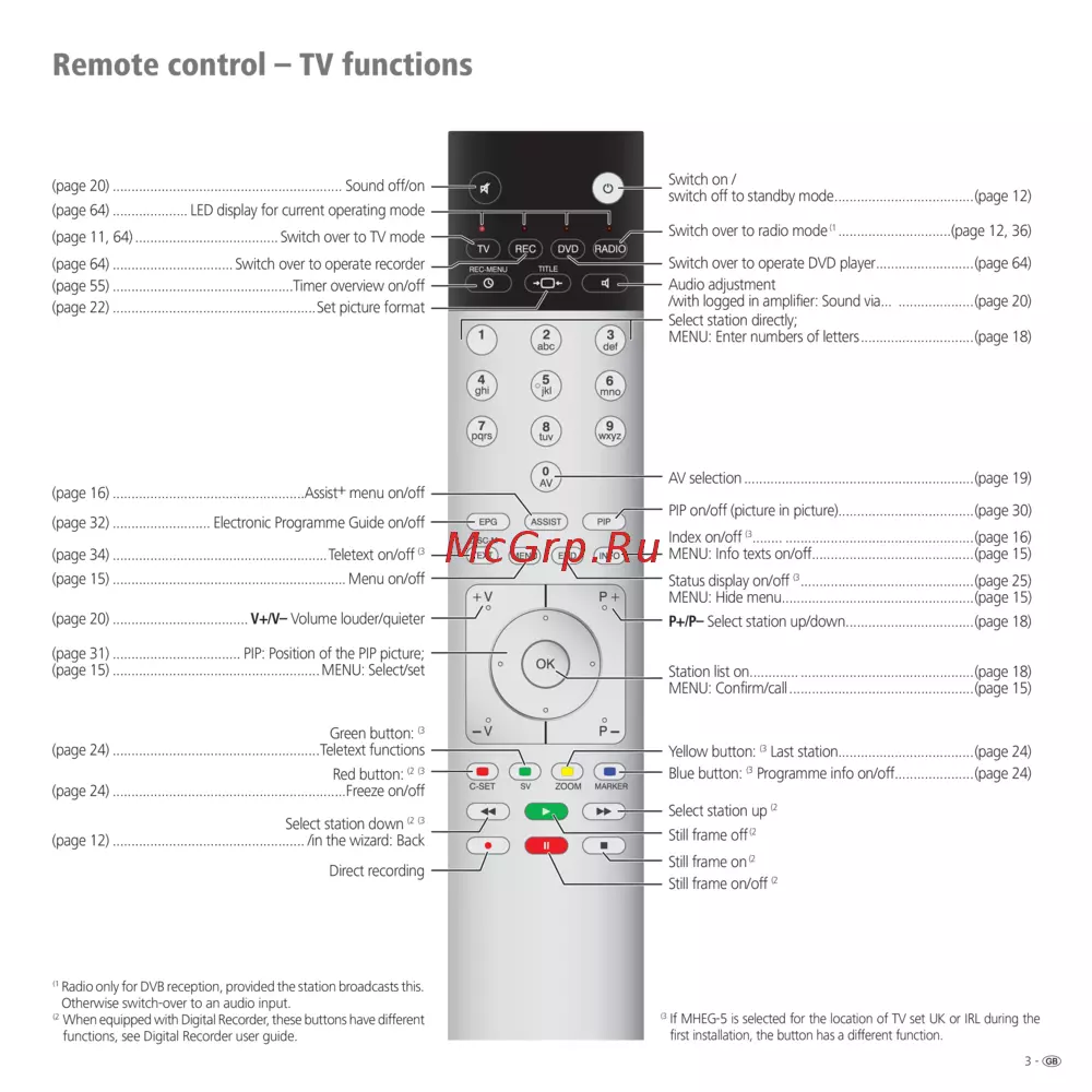- Remote control tv functions p.3