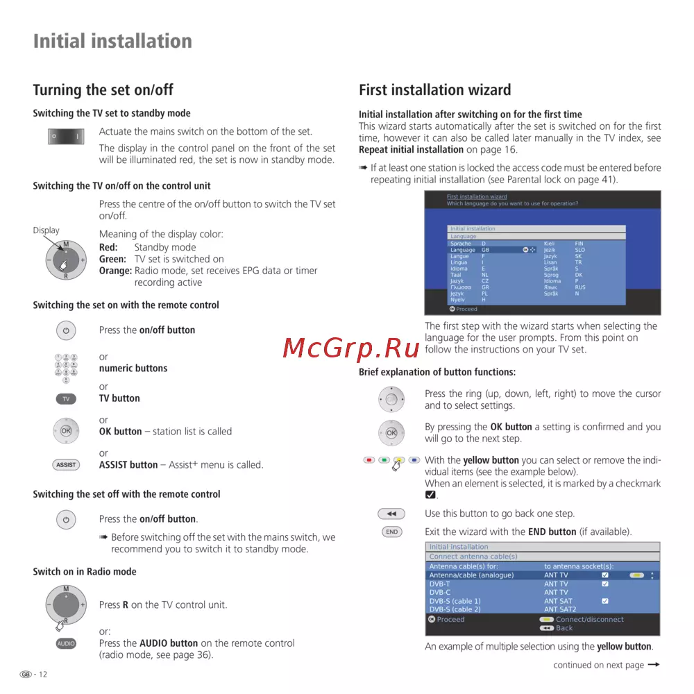 - You can change this during the initial installation page 12 or in the connection wizard page 44 before you connect other devices or make any changes please start the connection wizard page 44 and the sound components wizard page 52 and then follow the instructions that are displayed on the tv set p.6
