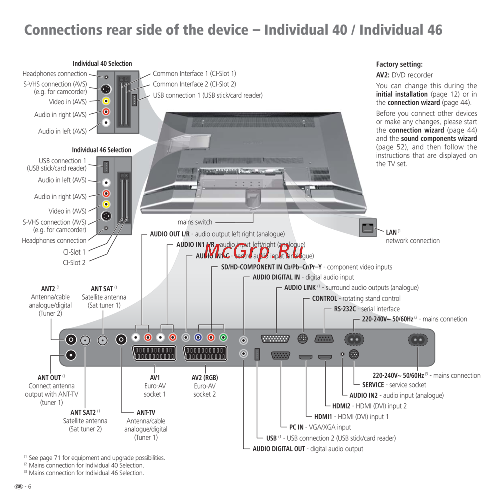 - The connection diagram is displayed again connect the equipment to the corresponding connections of the tv set as shown in the connection diagram p.44