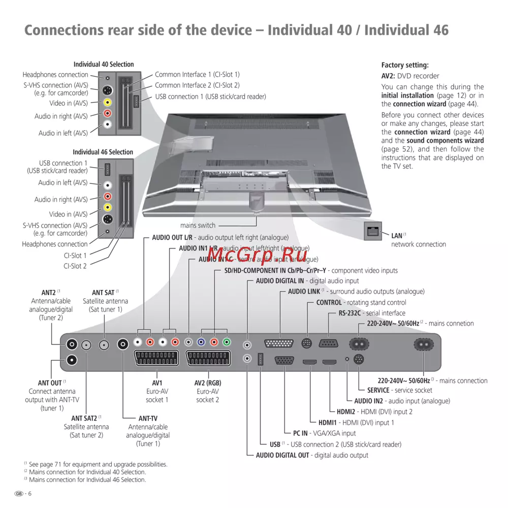 - You can change this during the initial installation page 12 or in the connection wizard page 44 before you connect other devices or make any changes please start the connection wizard page 44 and the sound components wizard page 52 and then follow the instructions that are displayed on the tv set p.6