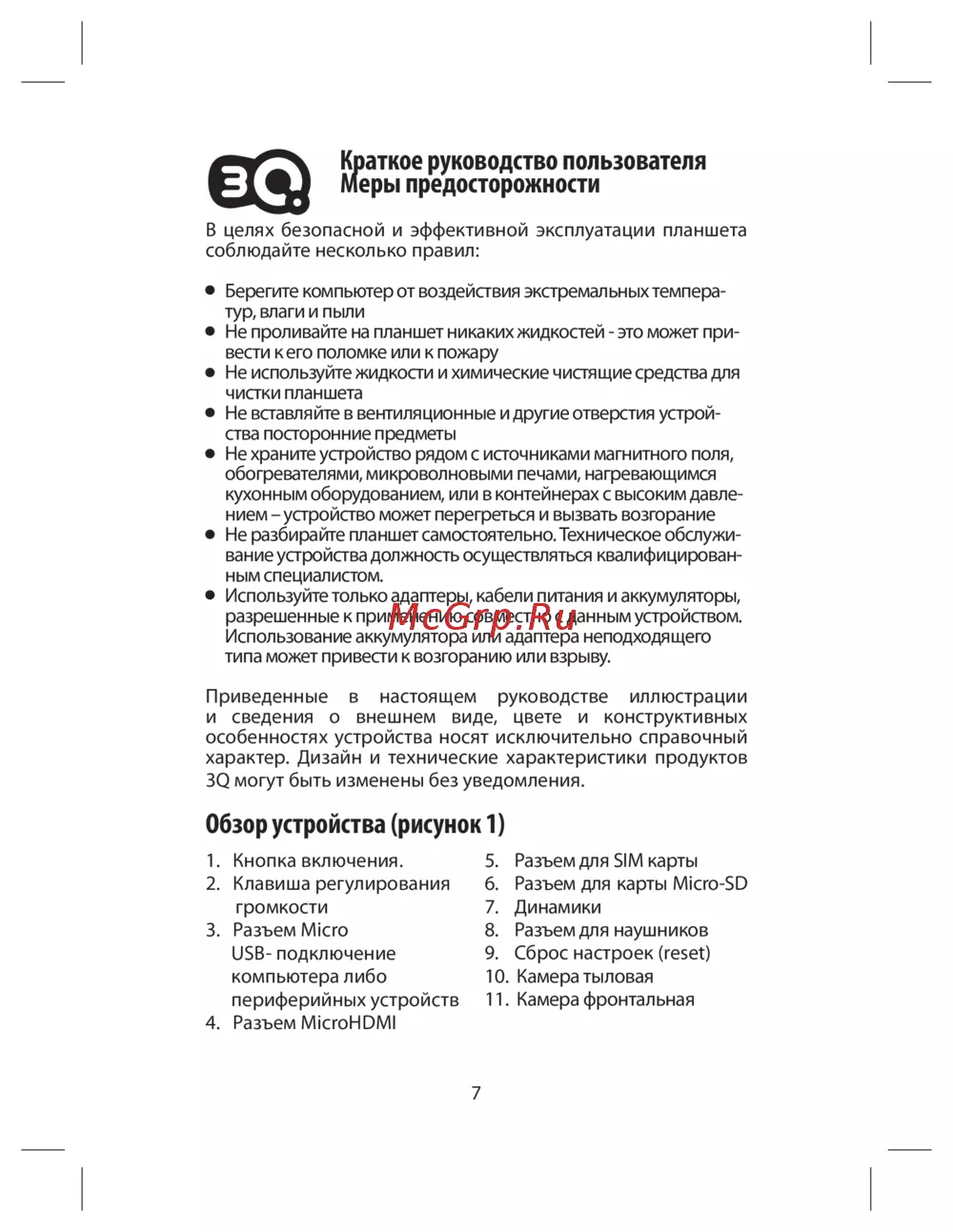 3Q Q-PAD 7" 4Gb 3G Black (MT0729B)Инструкция по эксплуатации -
