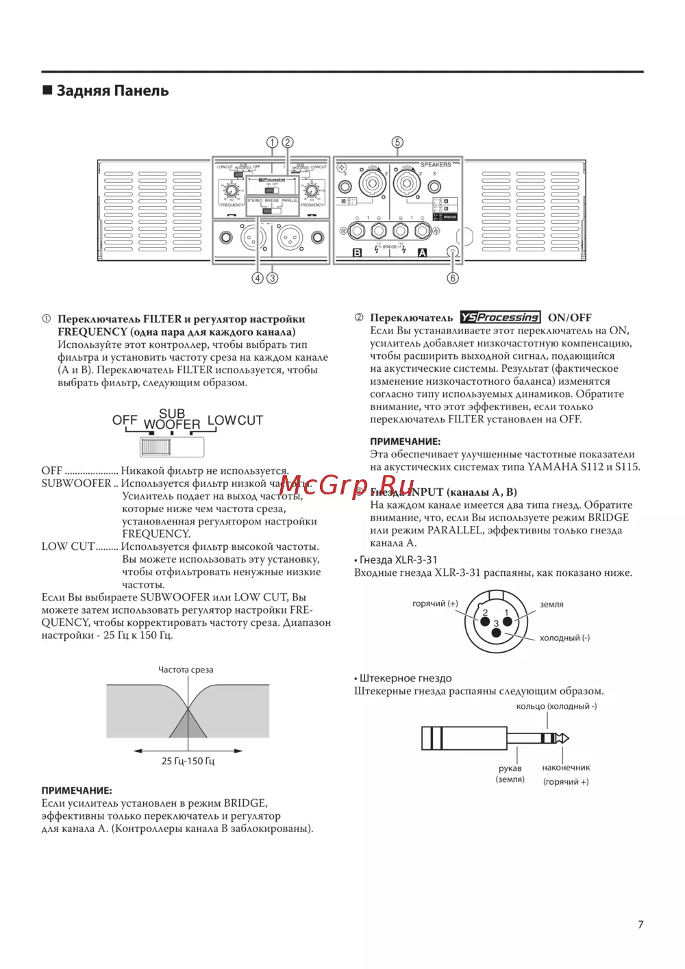 Yamaha P-2500S — настройка фильтров и частоты среза для акустических систем [7/15]