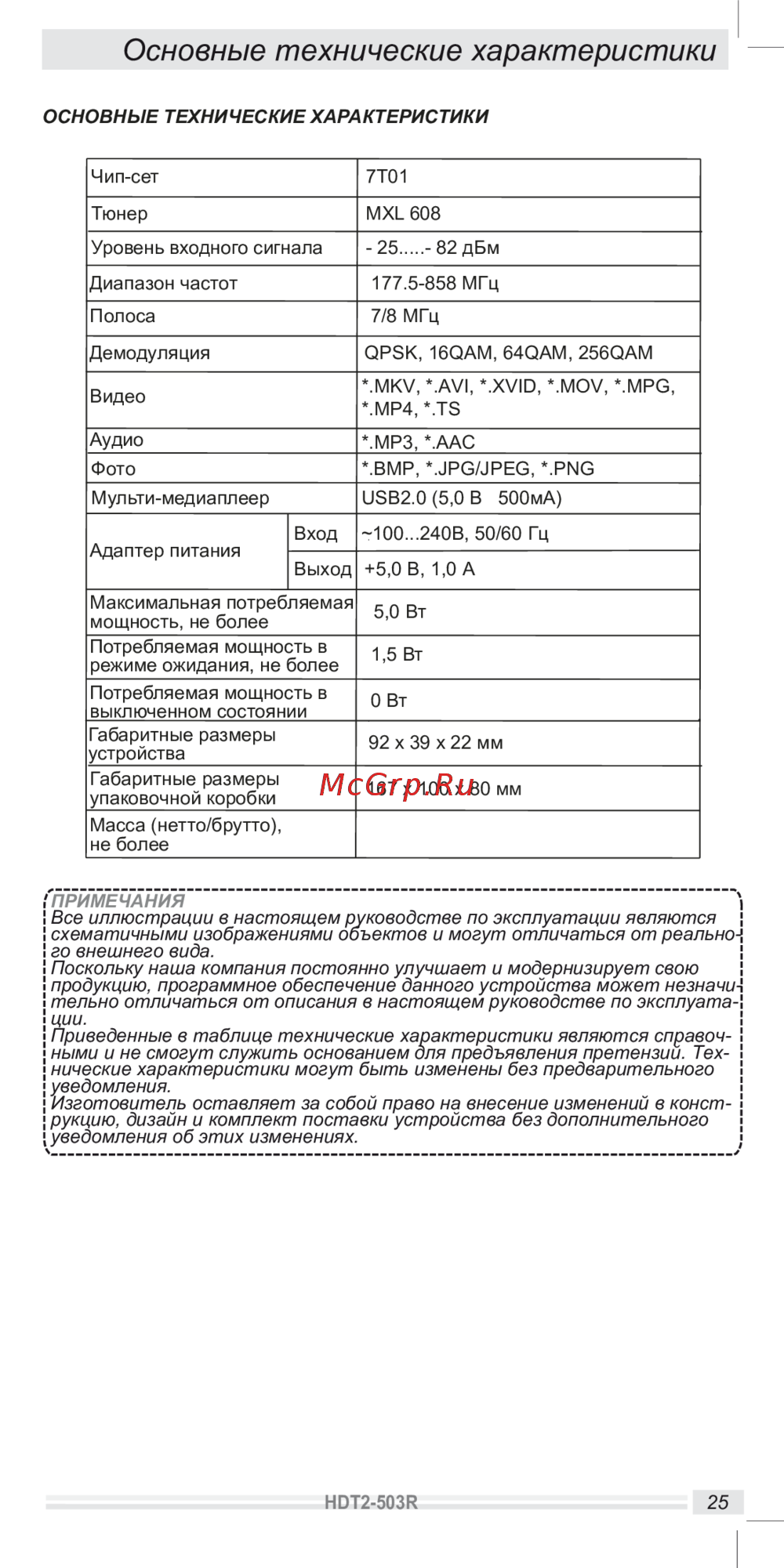 Akai HDT2-503R — технические характеристики мультимедийного плеера и тюнера [26/34]