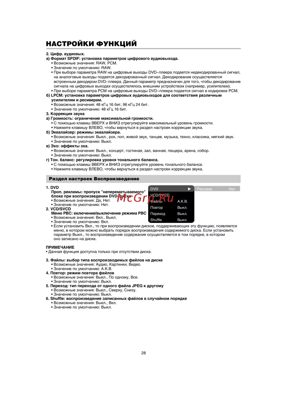 BBK DV-412SI + диск (4000 песен) — настройки цифрового аудио и воспроизведения: руководство пользователя [30/39]