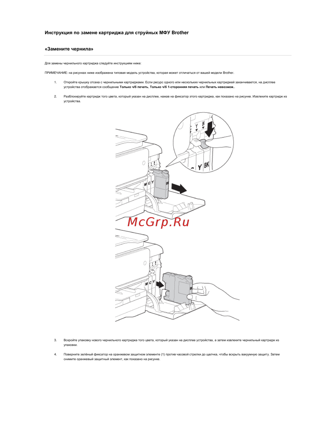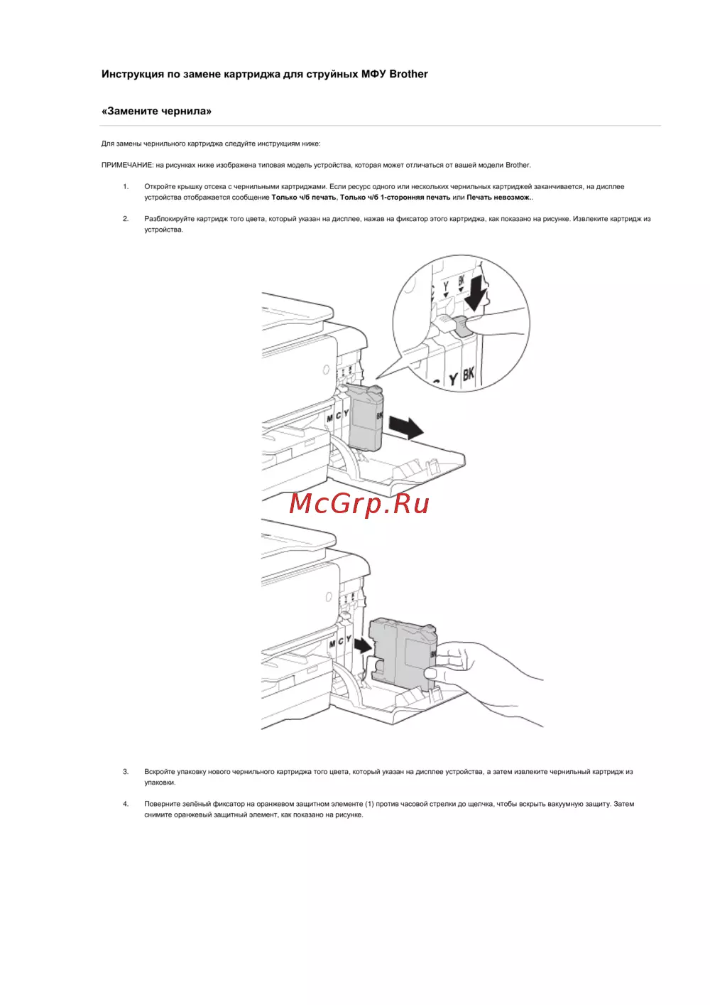 Brother LC1240Y — инструкция по замене чернильного картриджа для МФУ [1/3]