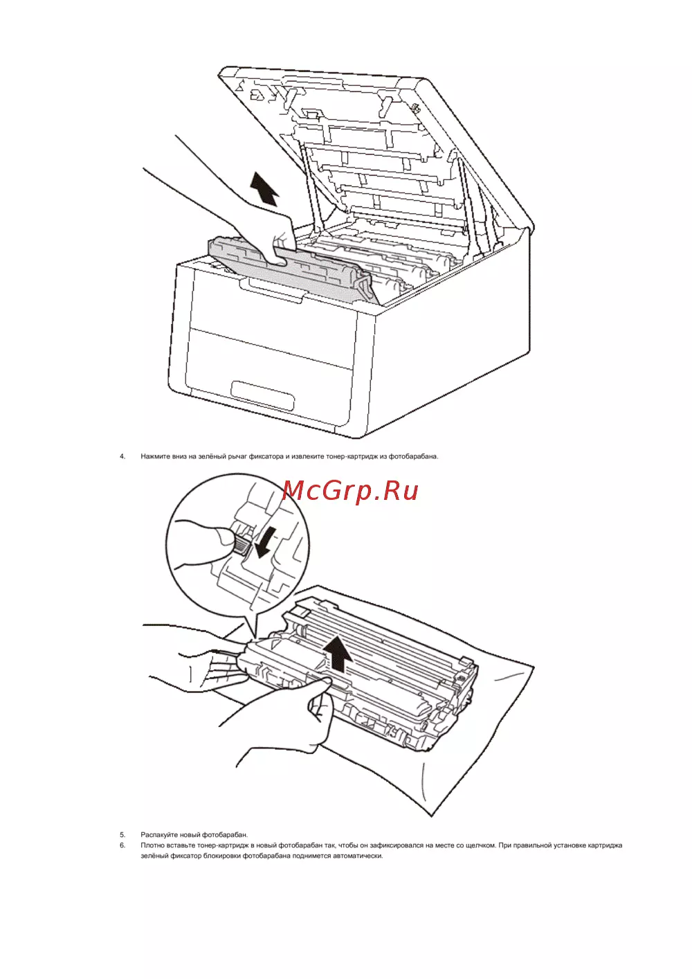 зелёный фиксатор блокировки фотобарабана поднимется автоматически.