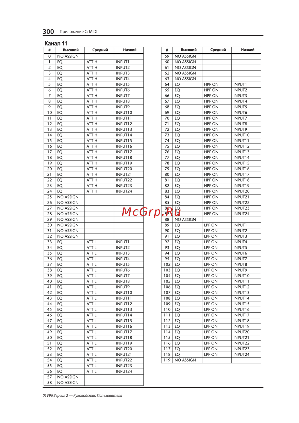 Yamaha 01V96VCM [298/320] Приложение c midi