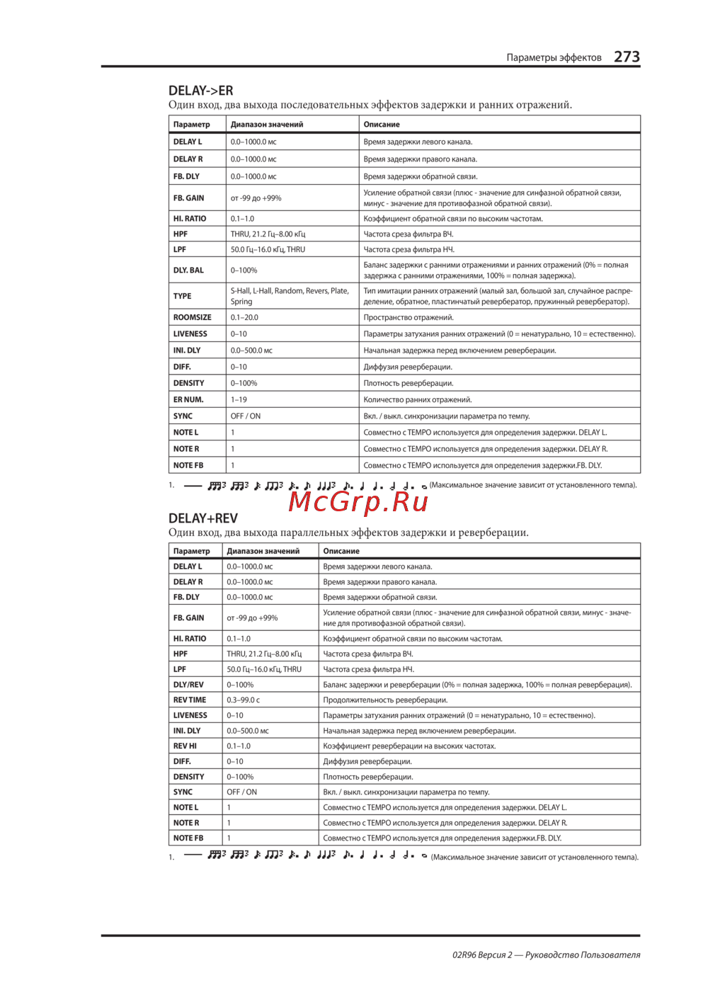 NOTE FB 1 Совместно с TEMPO используется для определения задержки.FB. DLY.