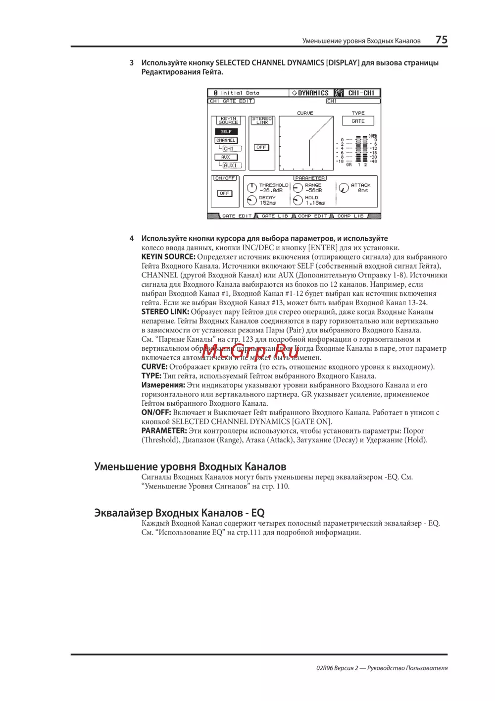 Yamaha 02R96VCM — audio Gate Control and EQ Guide: User Instructions for Signal Processing [75/341]