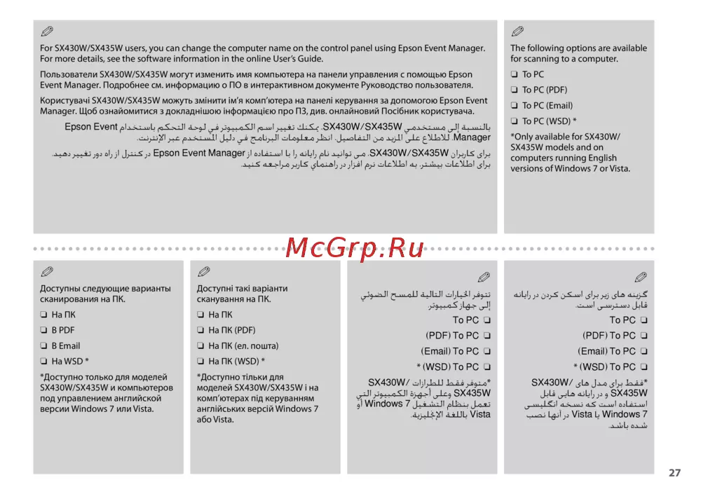 Epson Stylus SX435WИнструкция по эксплуатации -