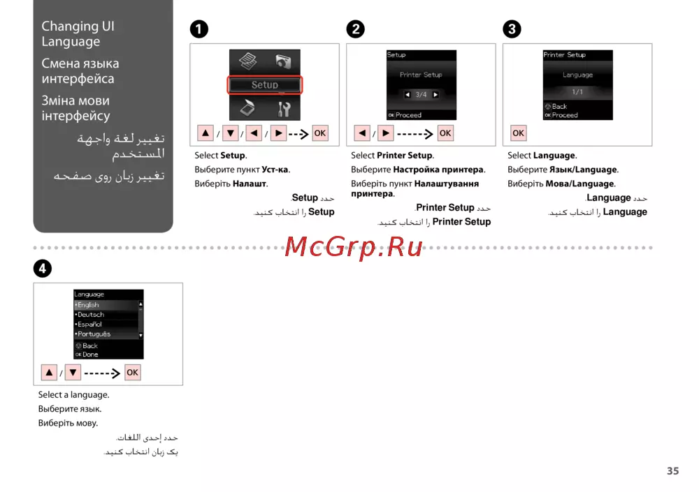 Epson Stylus SX230 [35/56] Смена языка интерфейса