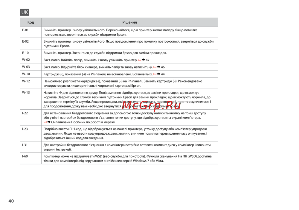 - Зверніться до служби підтримки epson p.54