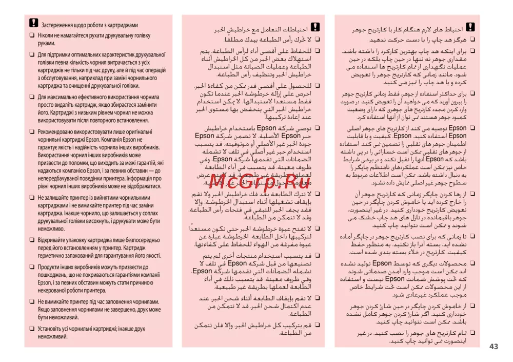 Epson Stylus SX230 — рекомендації щодо використання чорнильних картриджів [43/56]