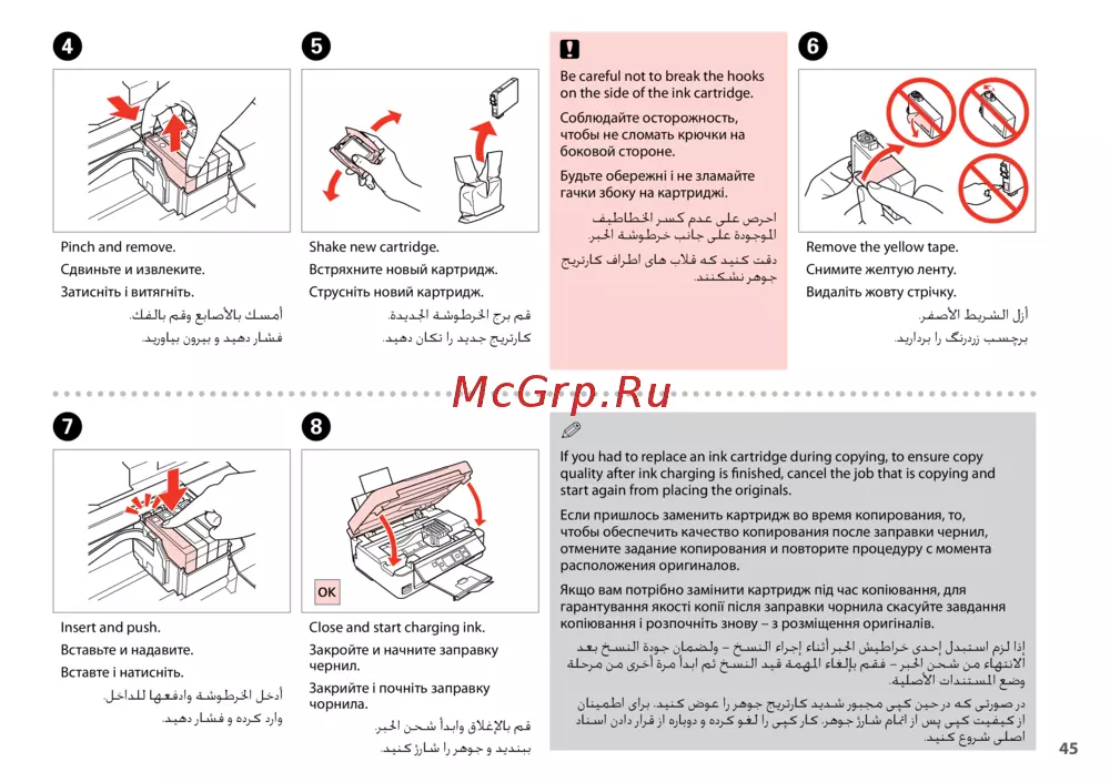 Epson Stylus SX230 — инструкция по замене картриджа и заправке чернил [45/56]