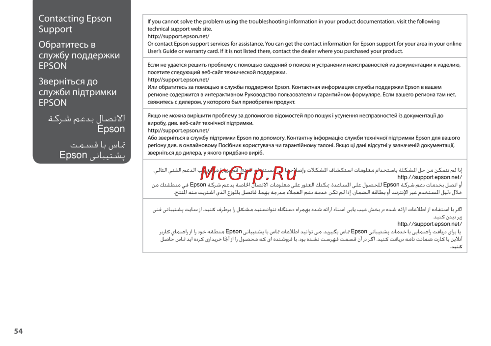 Epson Stylus SX230 — обратитесь в службу поддержки для решения проблем с устройствами [54/56]