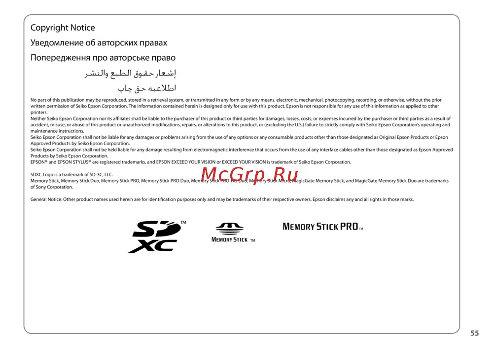 Epson Stylus SX230 — уведомление об авторских правах и ответственность за использование [55/56]