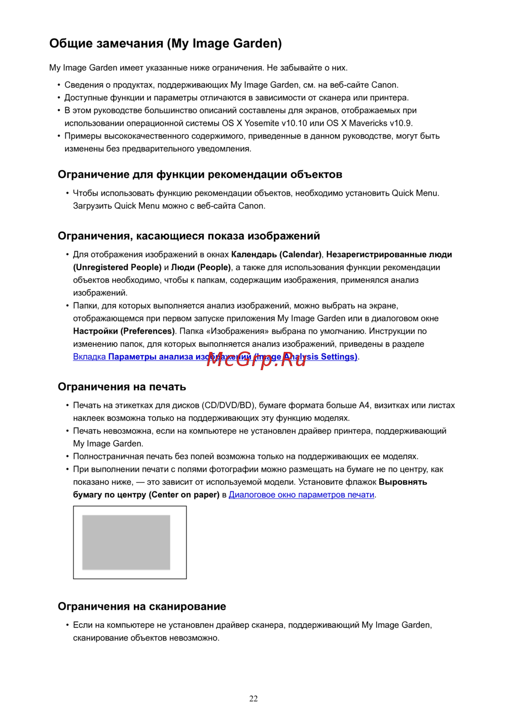 Canon PIXMA MG2940 — общие ограничения и рекомендации для My Image Garden [22/339]