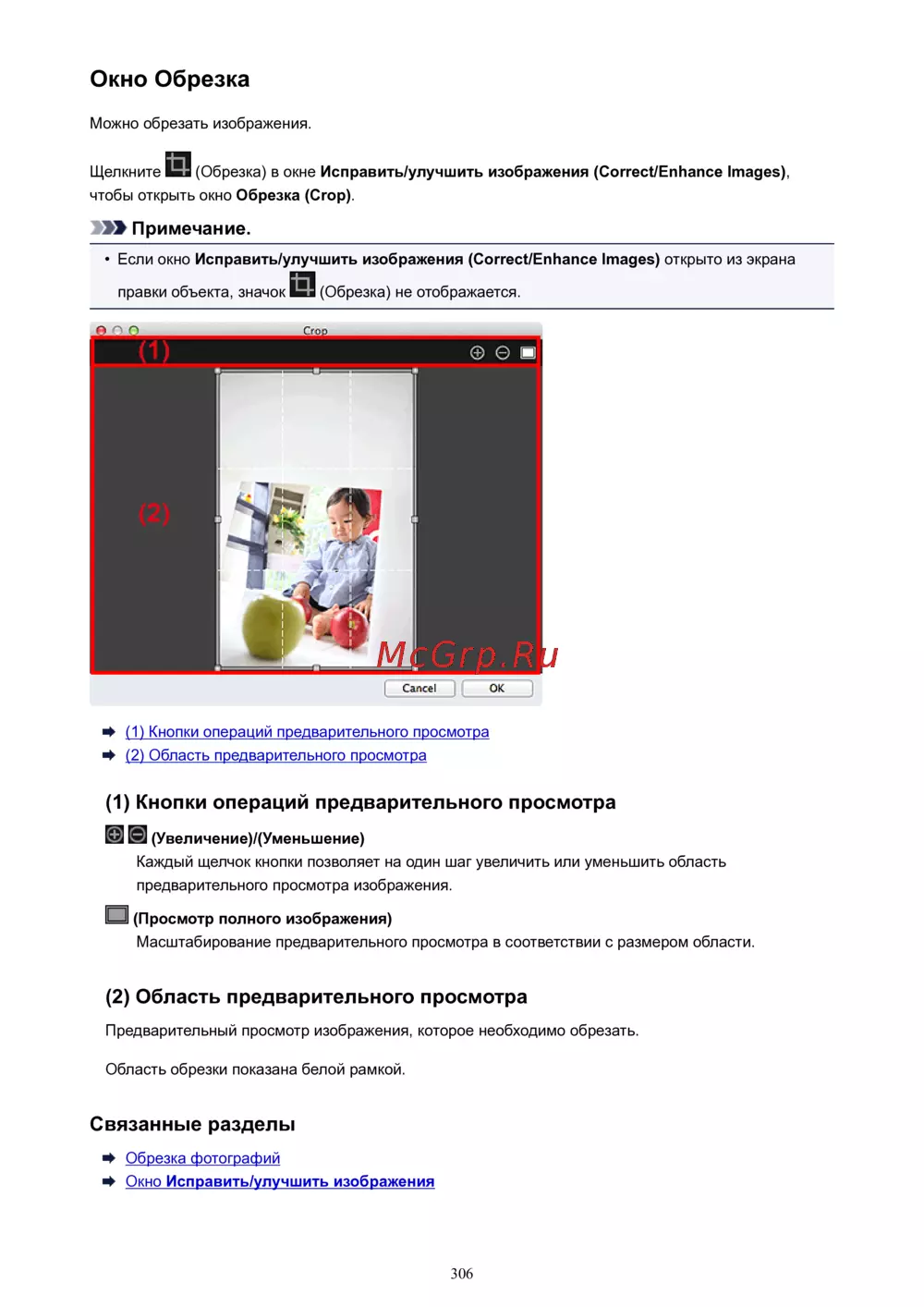 Щелкните (Обрезка) в окне Исправить/улучшить изображения (Correct/Enhance Images),