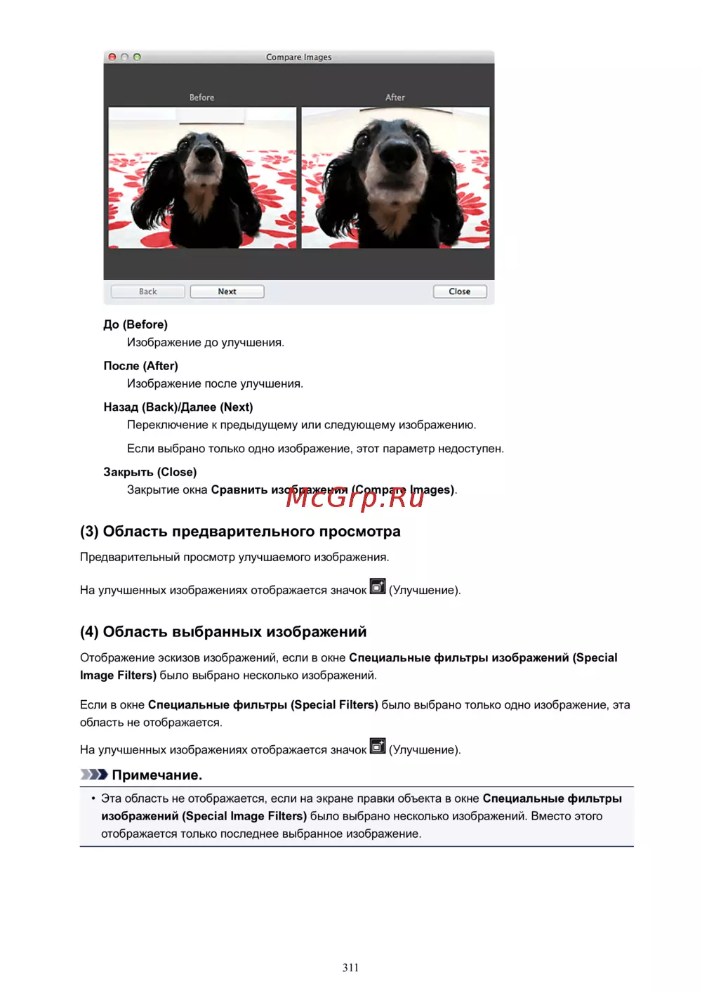 - 4 область выбранных изображений p.311