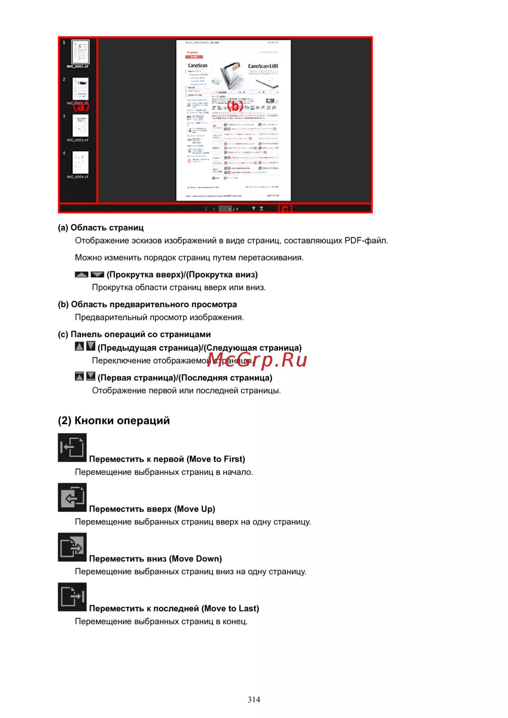Canon PIXMA MG2940 — управление страницами PDF: просмотр и перемещение [314/339]