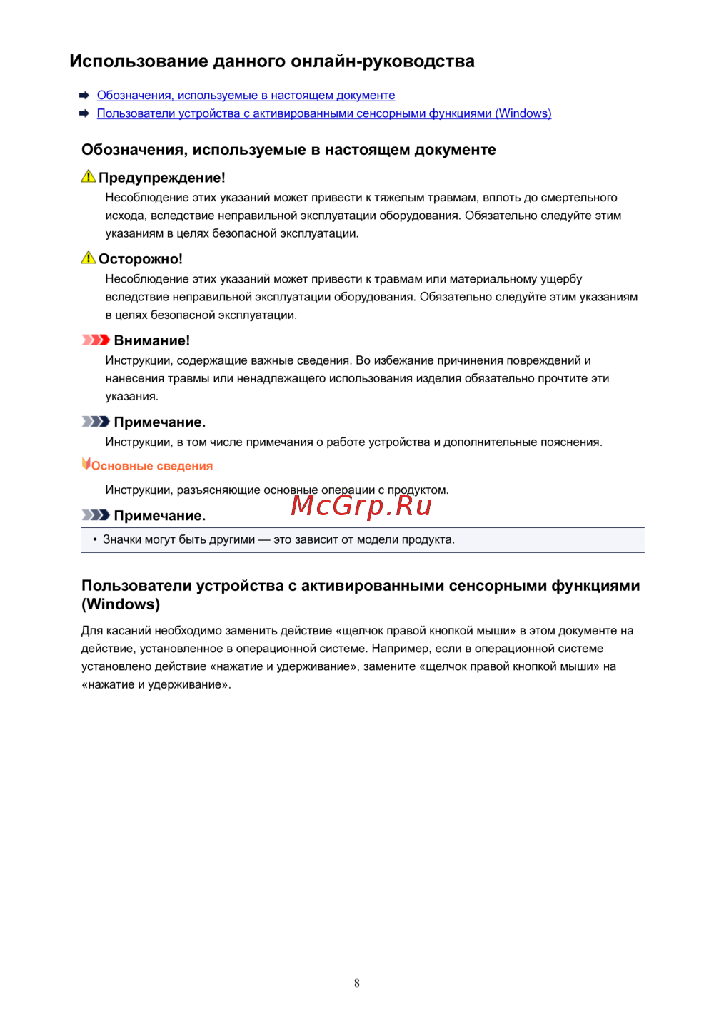 Canon PIXMA MG2940 — онлайн-руководство по безопасной эксплуатации оборудования [8/339]
