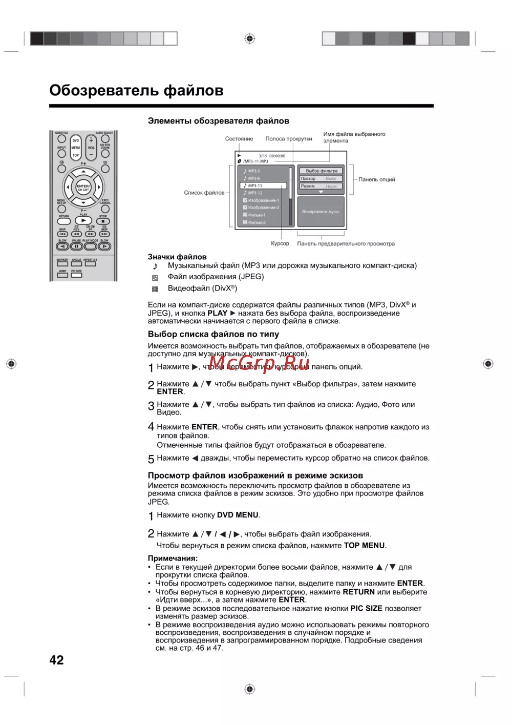 - Режимы воспроизведения дисков mp3 jpeg div p.48