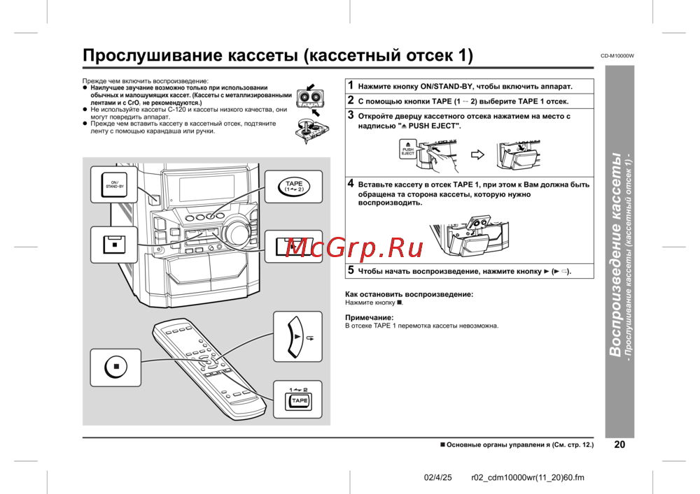 Sharp CD-M10000W [23/36] Прослушивание кассеты кассетный отсек 1