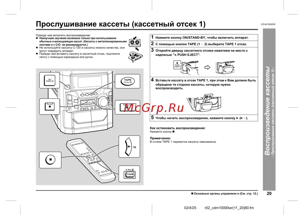 - Прослушивание кассеты кассетный отсек 2 p.24