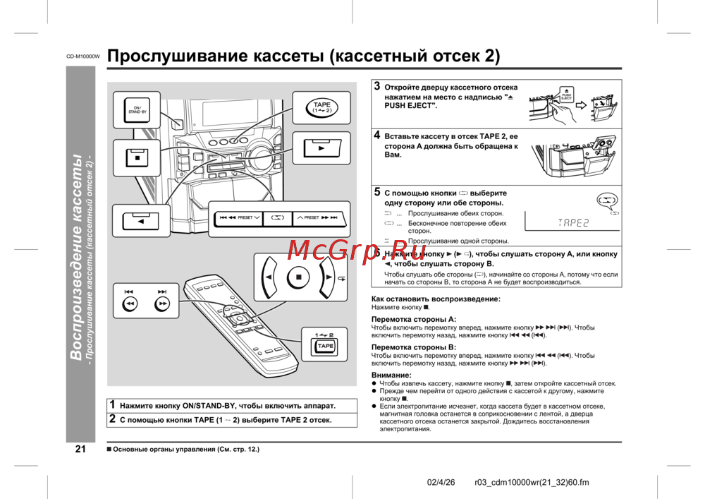 Sharp CD-M10000W [24/36] Прослушивание кассеты кассетный отсек 2