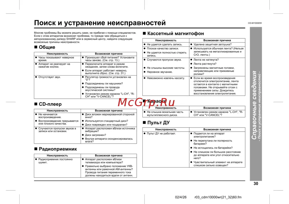 Sharp CD-M10000W [33/36] Поиск и устранение неисправностей