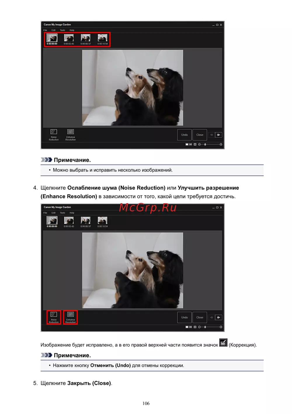 • Можно выбрать и исправить несколько изображений.