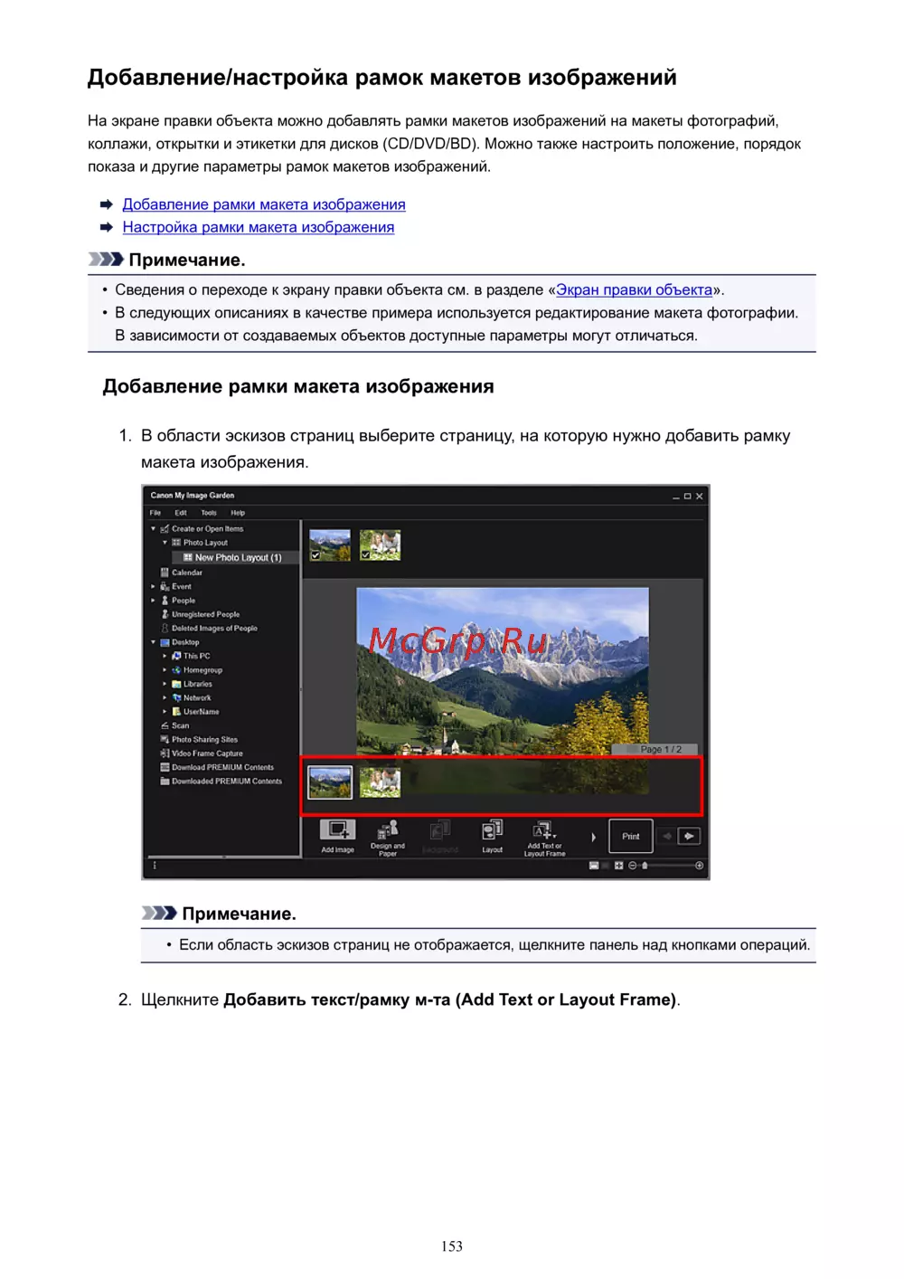 • В следующих описаниях в качестве примера используется редактирование макета фотографии.