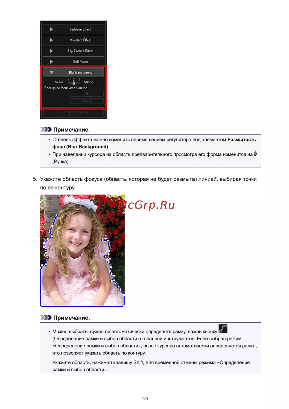 ![Canon Pixma MP280 [195/337] Укажите область фокуса область которая не будет размыта линией выбирая точки](/views2/1143316/page195/bgc3.png)