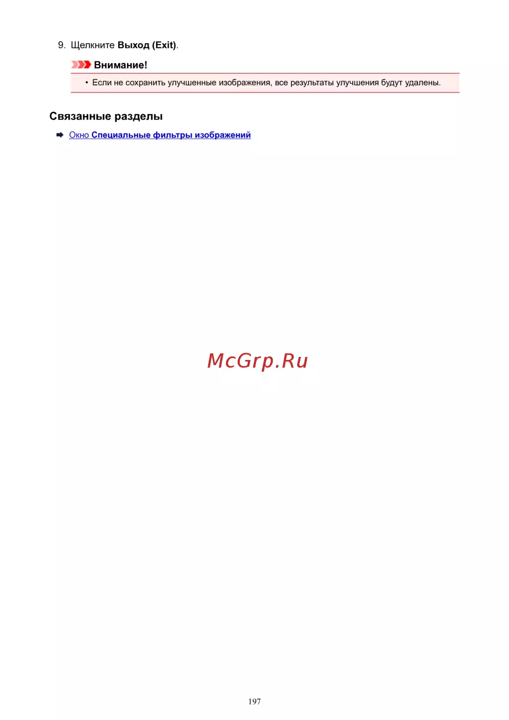 - Окно специальные фильтры изображений p.305
