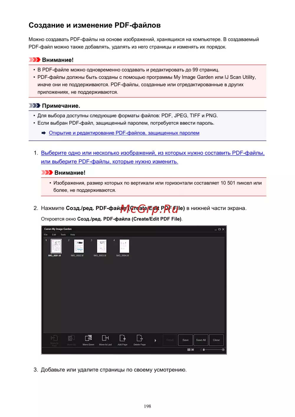 • PDF-файлы должны быть созданы с помощью программы My Image Garden или IJ Scan Utility,