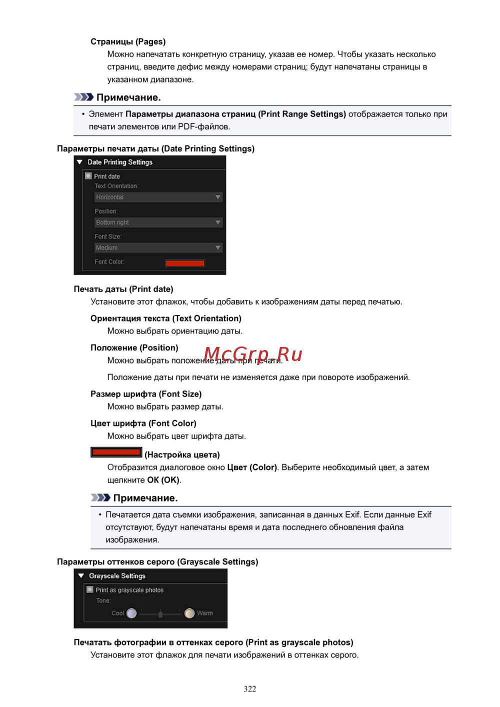 • Печатается дата съемки изображения, записанная в данных Exif. Если данные Exif