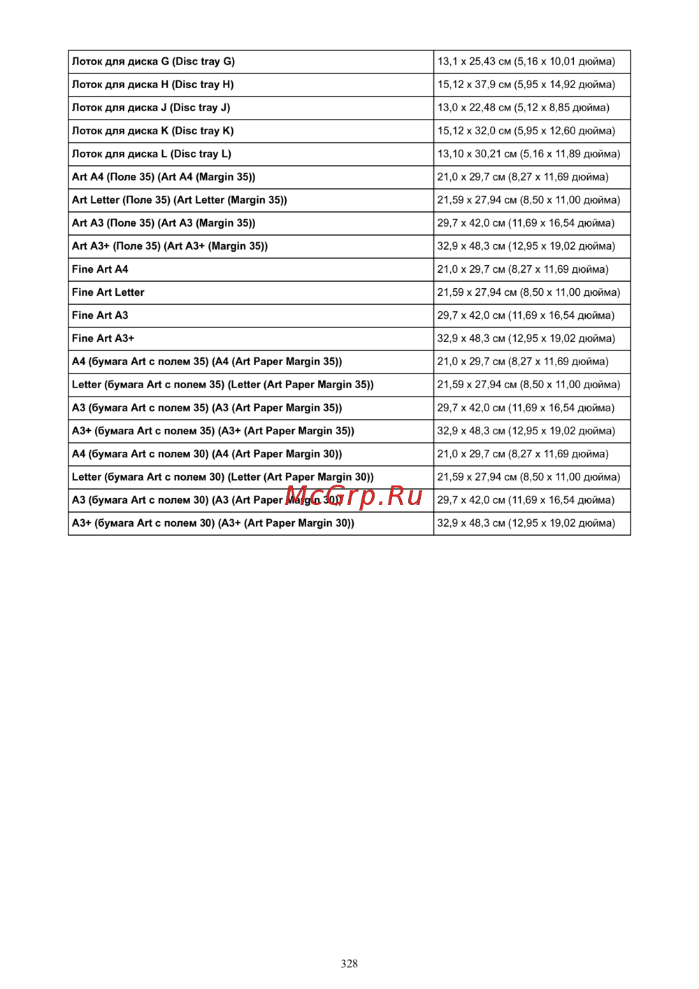 - Список размеров бумаги p.327