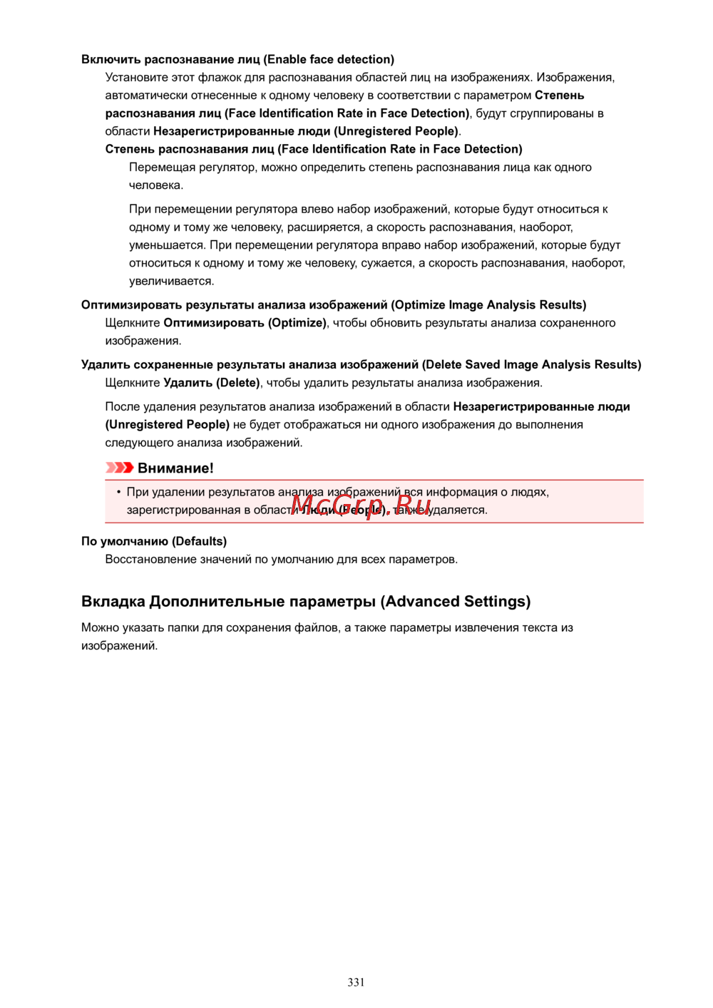 - Вкладка параметры анализа изображений image analysis settings p.330