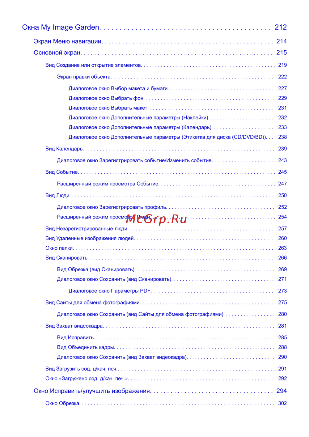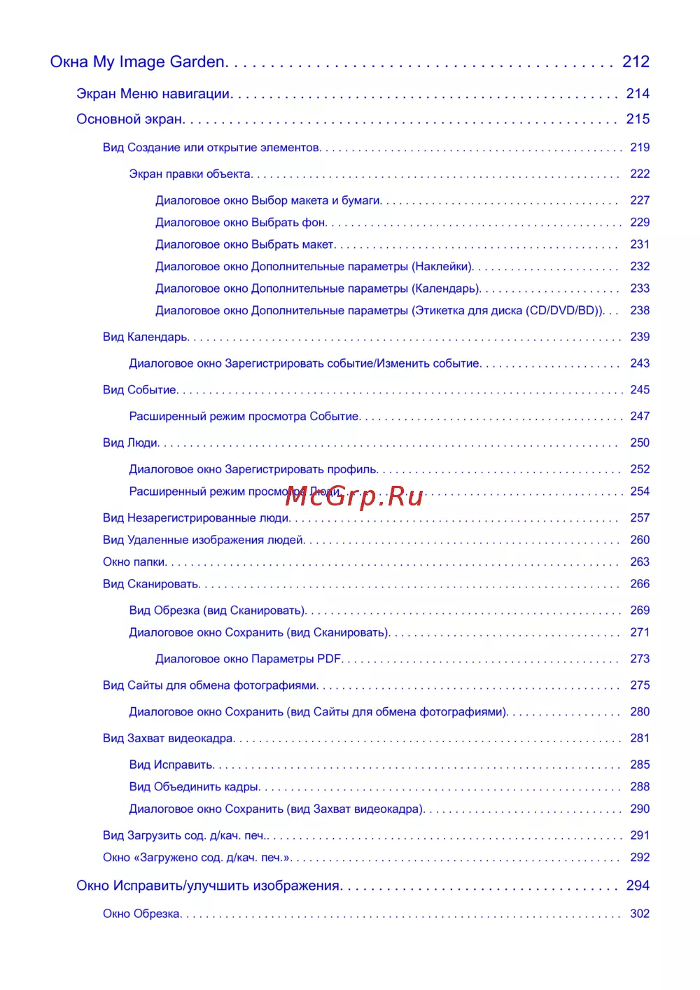 Окна My Image Garden. . . . . . . . . . . . . . . . . . . . . . . . . . . . . . . . . . . . . . . . . . . 212